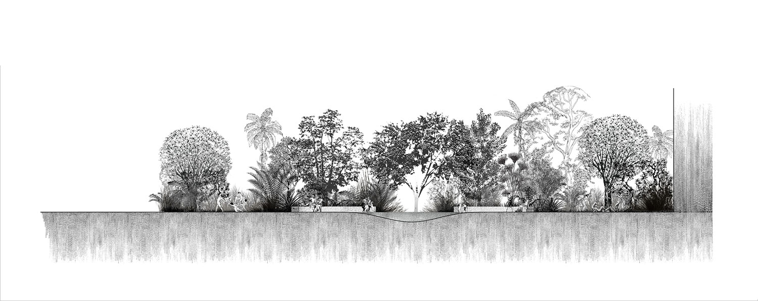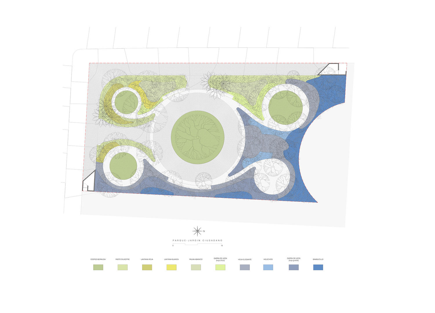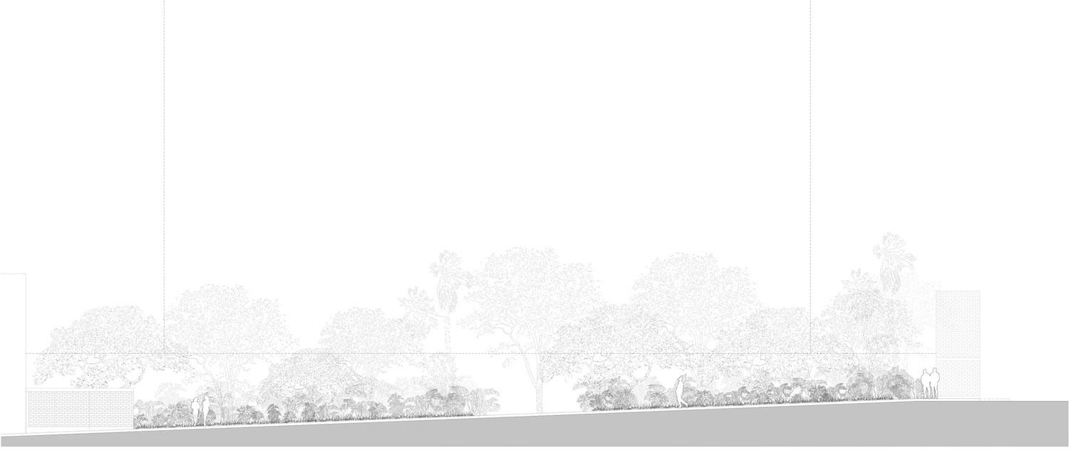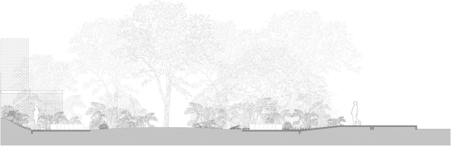 Thảm thực vật trong khu vườn giúp tạo nên sự riêng tư và dẫn dắt chúng ta theo những lối đi đóng mở để khám phá từng không gian bên trong. Các khoảng không gian sáng và tối được bố trí một cách khéo léo, tài tình sẽ tạo cảm giác ngạc nhiên trong lúc ta đi dạo. Các không gian đó truyền cảm hứng cho những câu chuyện và cho chúng ta những chỗ dừng chân, nán lại ở những nơi yên tĩnh với rất nhiều điều để chia sẻ với nhau. Dự án này đại diện cho một cách tiếp cận mới đến cuộc sống của người dân trong trung tâm thành phố. Một không gian tụ họp chung, nơi chúng ta có thể chia sẻ ý tưởng, tìm hiểu về nhau, thể hiện bản thân và cải thiện sự tương tác và các mối quan hệ trong cộng đồng; một nơi nào đó để trải nghiệm một thế giới của sự tĩnh lặng và bí ẩn. Khi chúng ta bỏ qua quá khứ, đồng nghĩa với việc chúng ta từ bỏ việc tìm kiếm ký ức, gây ra cảm giác tách rời của con người. Jardín Ciudadano là sự phản ánh của cuộc đấu tranh để thúc đẩy việc tạo ra các không gian công cộng mà mọi người có thể hoài niệm và chia sẻ, không chỉ nhằm mục đích giải trí mà còn để chiêm nghiệm.