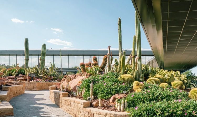 Khi xây dựng công viên xương rồng này, các kiến ​​trúc sư đã sử dụng một số chiến lược xây dựng xanh như vật liệu đúc sẵn, thủy tinh quang điện và năng lượng địa nhiệt. Nhà kính và khu vườn cũng được lắp đặt với hệ thống thu hồi và xử lí nước công nghệ cao giúp công viên tối ưu hóa việc sử dụng nguồn nước tưới cho toàn bộ hệ thống.