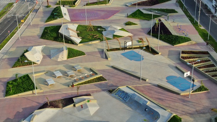 Landscape design of the bus station combined with a public park creates an impressive space / Thiết kế cảnh quan bến xe bus kết hợp với công viên công cộng tạo nên một không gian ấn tượng
