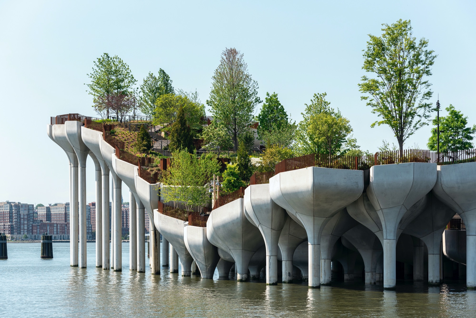 Inspired by wooden piles lying under the sea, shaped like a leaf drifting on the water, the architects who designed the landscape of Little Island Park have brought awe to anyone who admires it.