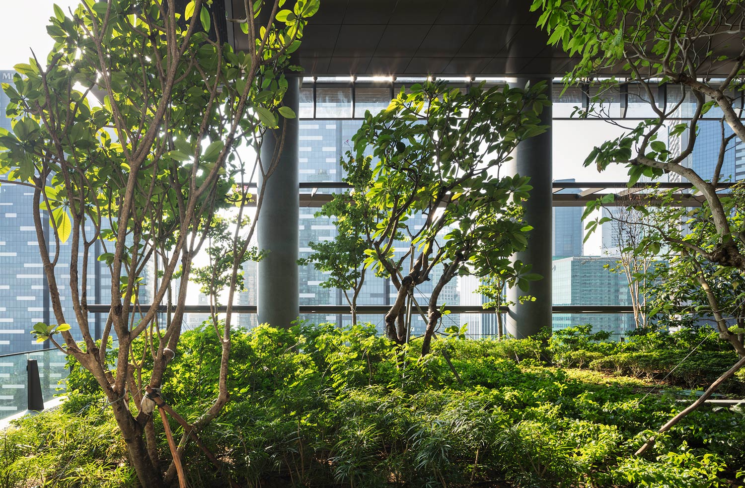 Cây trồng cũng được lựa chọn để thu hút các côn trùng và bướm. Ở khu vực cao nhất, trồng các cây nhỏ và cỏ mềm với tone màu chủ đạo là màu vàng và bạc. Các lối đi bằng gỗ, lối đi lát đá, tông màu nâu đỏ được sử dụng cho hệ thống lourve và không gian nội thất sẽ làm cho khu vườn mang vẻ đẹp tự nhiên hơn. Ngoài ra, còn có thêm những điêu khác Fortune Bowl bằng đồng đặt dọc theo lối đi chính. Được tạo ra để mang lại may mắn, sự thịnh vượng và niềm vui cho cư dân và du khách, thiết kế này đề cập đến con số may mắn 8.