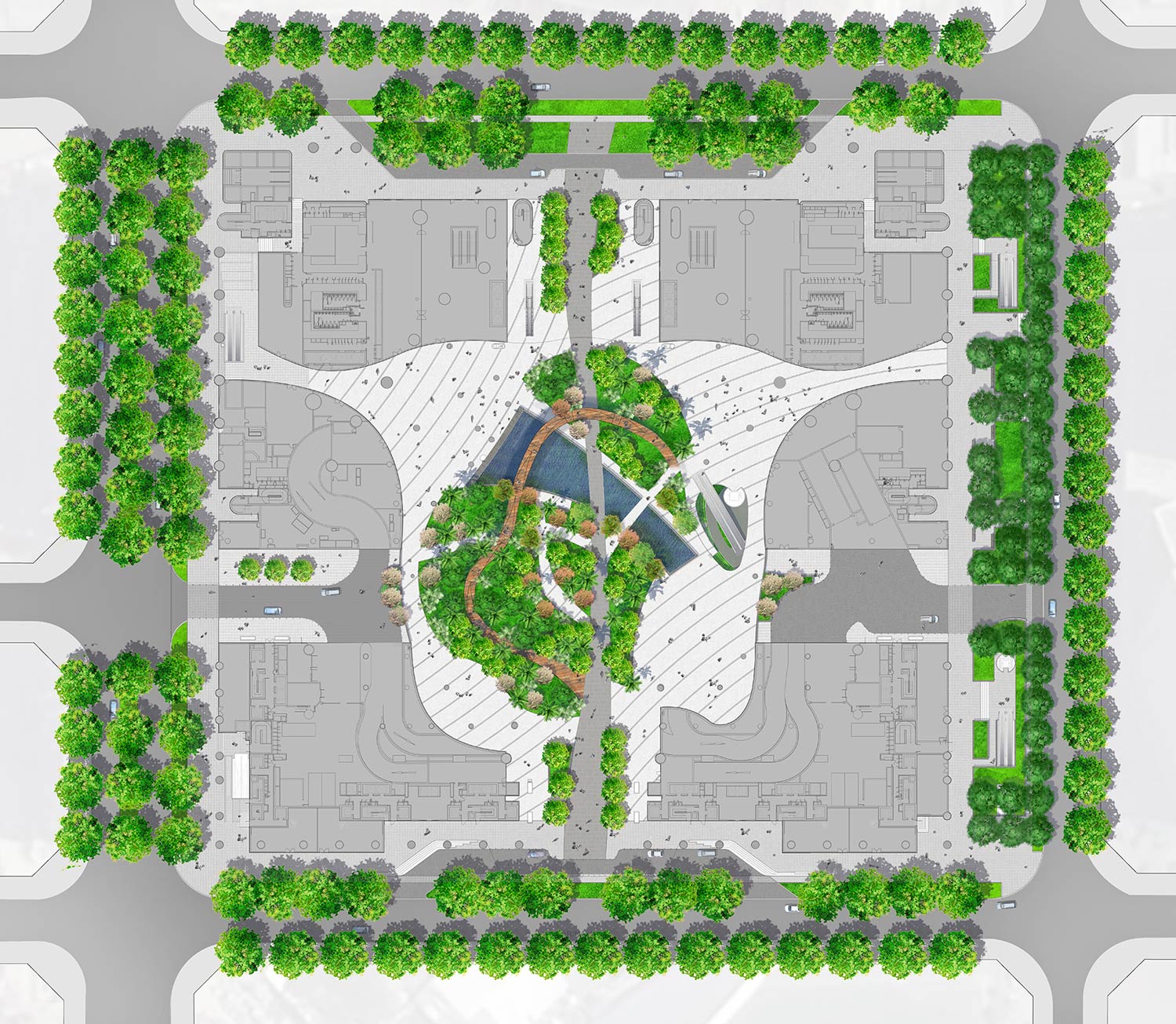 Gustafson Porter + Bowman: Marina One là một khu công trình phức hợp mang tính sáng tạo, bền vững và có mật độ xây dựng cao, nằm trong khu vực tài chính Marina Bay sôi động, nơi Chính phủ Singapore muốn trở thành “Thành phố trong một khu vườn”. Marine One gồm bốn tòa tháp được bố trí xung quanh quảng trường trung tâm, dự án biến khu vực cảnh quan rộng lớn bên ngoài như tràn vào bên trong tòa nhà. Thiết kế của Gustafson Porter + Bowman cho công trình được coi là biểu tượng ‘Trái tim Xanh’ có sự kết hợp rất hài hòa yếu tố điêu khắc , cây xanh cảnh quan cùng với kiến trúc của tòa nhà. Trong khi mặt ngoài của bốn tòa tháp (do các kiến trúc sư Ingenhoven thiết kế) đã tối đa hóa không gian bên trong và cho phép tòa nhà có thể tạo ra một khu vườn nhiệt đới dày đặc bên trong.