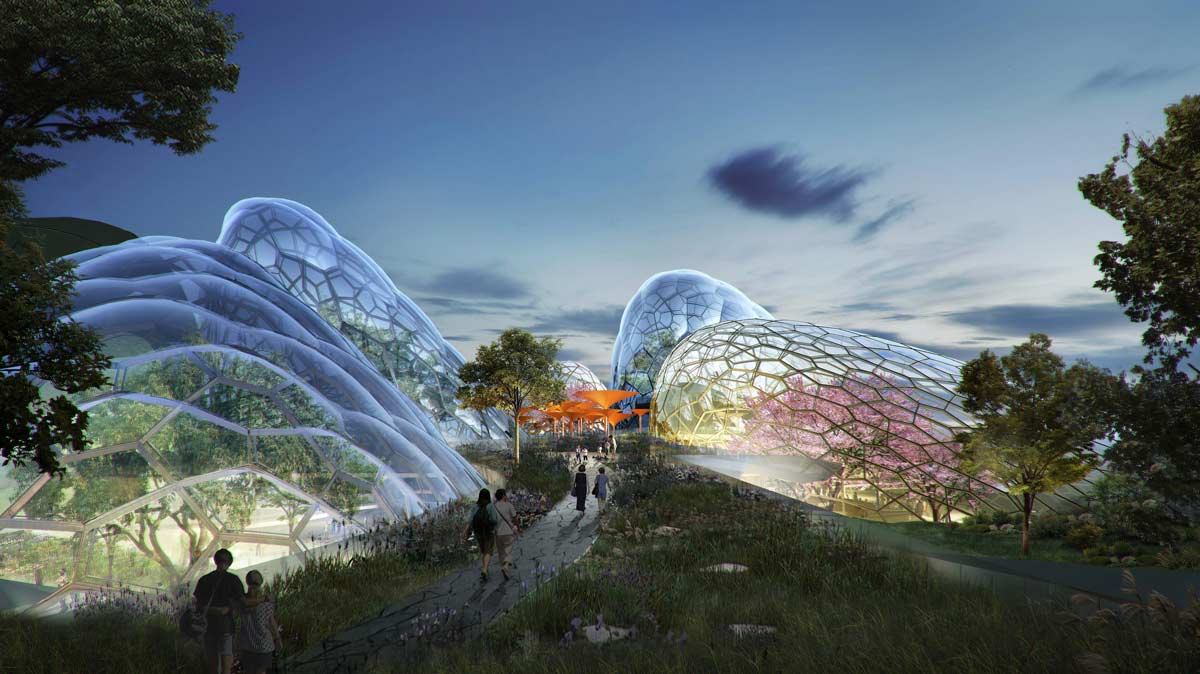 Conservatory nằm tại vị trí trung tâm, liên kết toàn bộ các yếu tố với các địa hình, nó tạo thành điểm nhấn chính của công viên. Conservatory gồm năm quần thực vật, tạo thành những địa điểm khám phá lí thú. Bao quanh là hàng loạt các không gian vườn và khu rừng ngập nước, sẽ là lời mời gọi hấp dẫn du khách khám phá bên trong. Wetland Visitor Centre, nằm bên trong mái vòm, là trung tâm thông tin khoa học giúp du khách dễ dàng tìm hiểu về hệ sinh thái ở xung quanh.